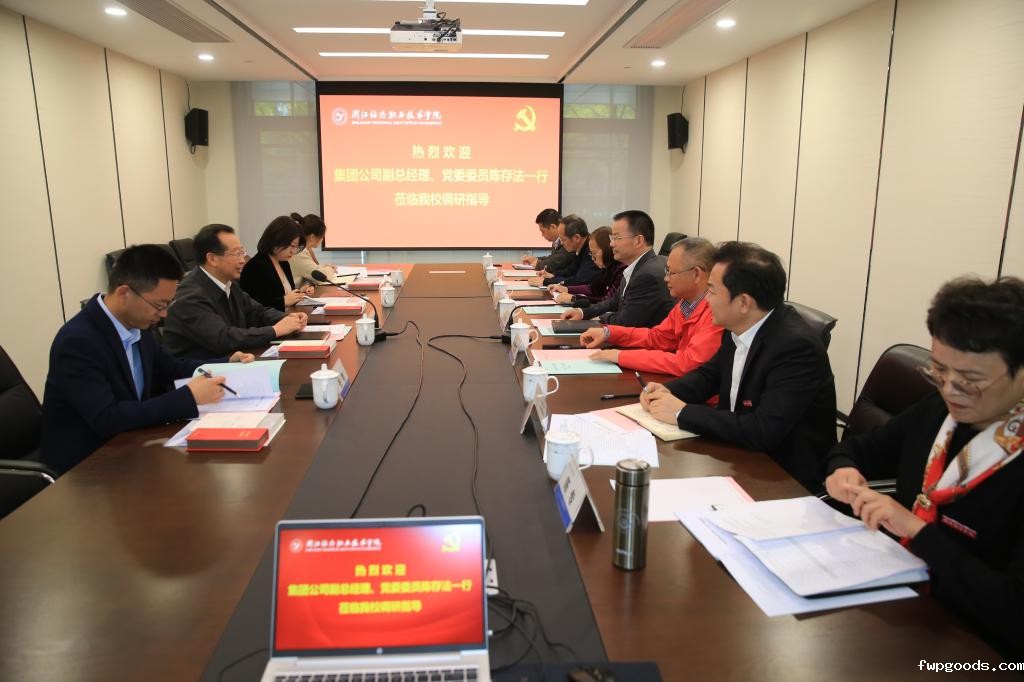 党委书记骆光林对陈存法一行莅临学校调研指导工作表示热烈欢迎。他指出,学校自第二次党代会提出“1512”行动计划以来,围绕争创中国特色高水平高职学校目标,稳步实施5大战略,推进12大工程建设,取得了一定的成效。今年站在历史新起点,学校认真谋划“十四五”发展新蓝图,明确了“十四五”发展目标是争创具有供应链集成服务特色的全价值化、全体系化的国内一流、国际特色鲜明的高水平职业技术大学,充分体现了全体师生的期盼与愿景。真诚希望集团能够持续关注制约学校发展的突出问题,一如以往地支持学校的改革与发展,助力学校实现“十四五”战略目标,学校也将全力以赴推进“双高”建设,实现高质量发展,为“科技机电”战略作出应有的贡献。