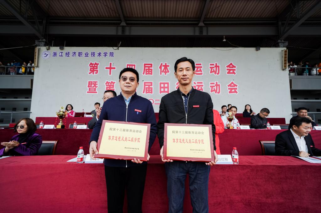 开幕式上,学校领导向第十三届体育运动会团体总分前四名和体育道德风尚二级学院颁奖。