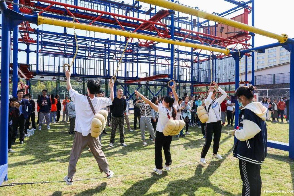 抢夺铁索桥(2男2女,手持炸药包,依次通过独木桥、手吊环桥、荡板与铁索荡桥,最后到达终点)
