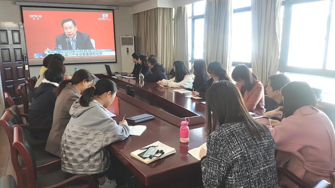 11月12日上午10时,中共中央举行新闻发布会,介绍了党的十九届六中全会精神。学校积极组织落实师生收看直播,认真学习领会全会精神。广大师生纷纷表示,中国人民对美好生活的向往正在不断地变为现实,一代人有一代人的使命,一代人有一代人的担当,我们要全面响应“社会主义是干出来”的伟大号召,不忘初心、牢记使命,以优异成绩迎接党的二十大胜利召开。