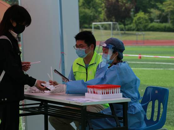 一个个温暖的场面,一句句温馨的提醒,“请大家全程佩戴口罩,做好个人防护”“请大家进行扫码签到”“请大家提前打开健康码,手机屏幕调亮”“请保持一米间距,有序排队”“请拿好咽拭子,前往采样区采样”。