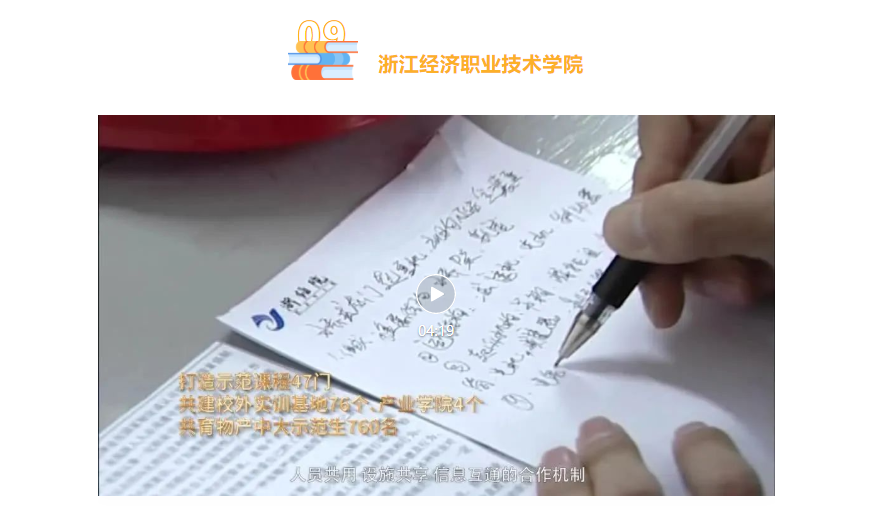 近日,教育之江在职业教育周之际,展示我省高职院校第一方阵”9所国家“双高计划”高水平专业群建设单位改革成效,我校产教融合案例进行了展示。