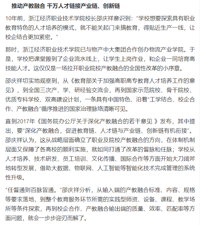 【中国青年报】【教育部官网】刊文校长邵庆祥专访回顾这十年我校产教融合发展研究脉络