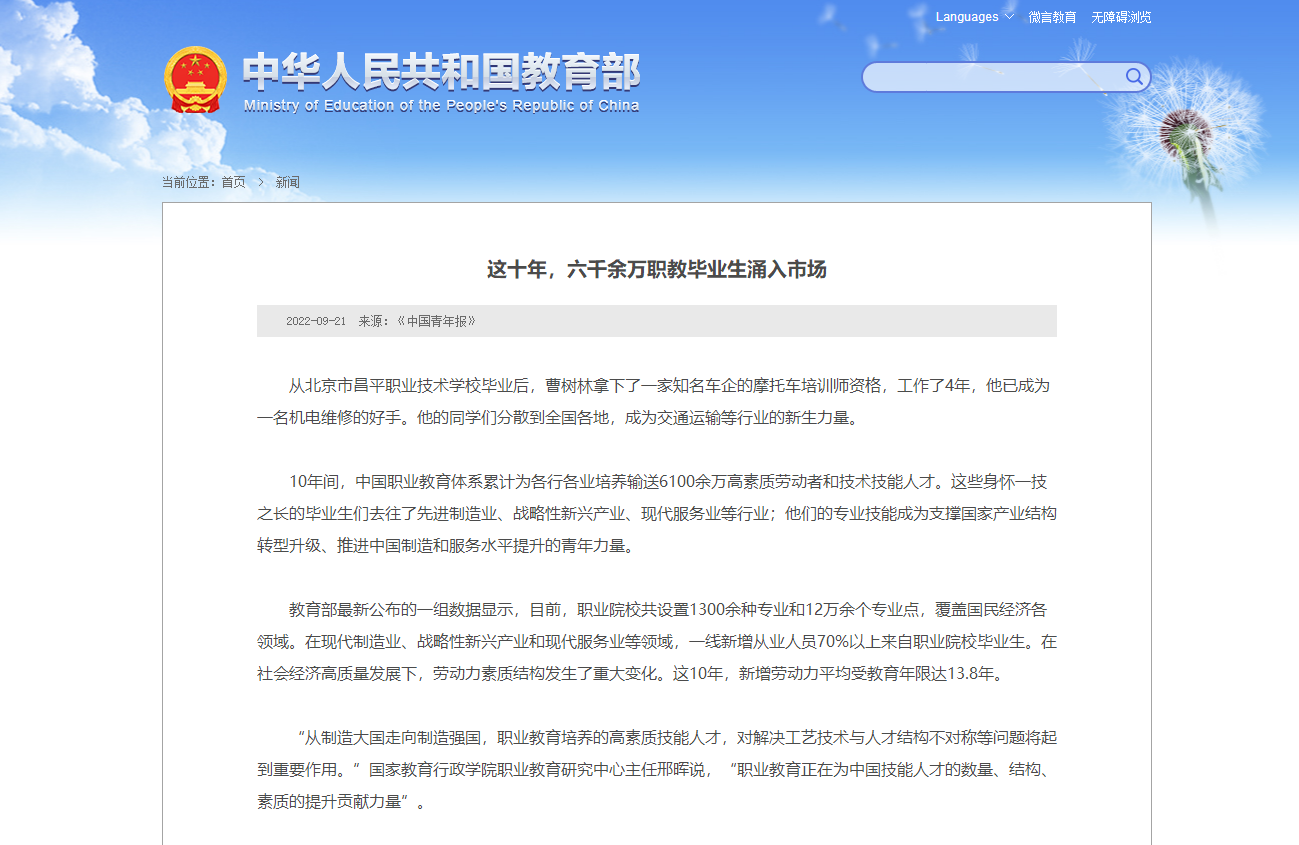 媒体链接:http://www.moe.gov.cn/jyb_xwfb/s5147/202209/t20220921_663467.html