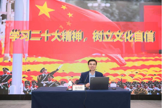 梁丽华是马克思主义学院院长、党总支书记,也是国资国企红色根脉理论宣讲工作室负责人之一。她作党的二十大精神学习报告,重点阐述了六方面的内容:深刻领会党的二十大的主题和主要成果,深刻领会过去五年工作和新时代十年伟大变革,深刻领会开辟马克思主义中国化时代化新境界,牢牢把握中国式现代化的中国特色和本质要求,牢牢把握全面建设社会主义现代化国家的目标任务,持续强化以伟大自我革命引领伟大社会革命的高度自觉。金向阳作了题为《学习二十大精神,树立文化自信》的专题报告,在充分解读文化自信内涵的基础上,发出倡议“愿我们用文化自信的力量,谱写中华民族新未来”。姚硕则与彩虹人生青年理论宣讲工作室骨干成员一起,参与“理享时间”互动讨论,围绕“创新”、“协调”、“绿色”、“开放”、“共享”等关键词,和大家一起探讨如何用党的二十大精神引领高质量发展。