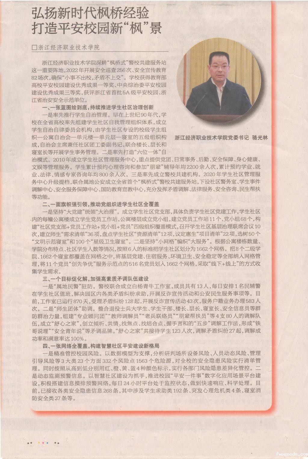 【浙江教育报】我校党委书记骆光林在2023年全省教育系统工作会议上分享《弘扬新时代枫桥经验 打造平安校园新“枫”景》