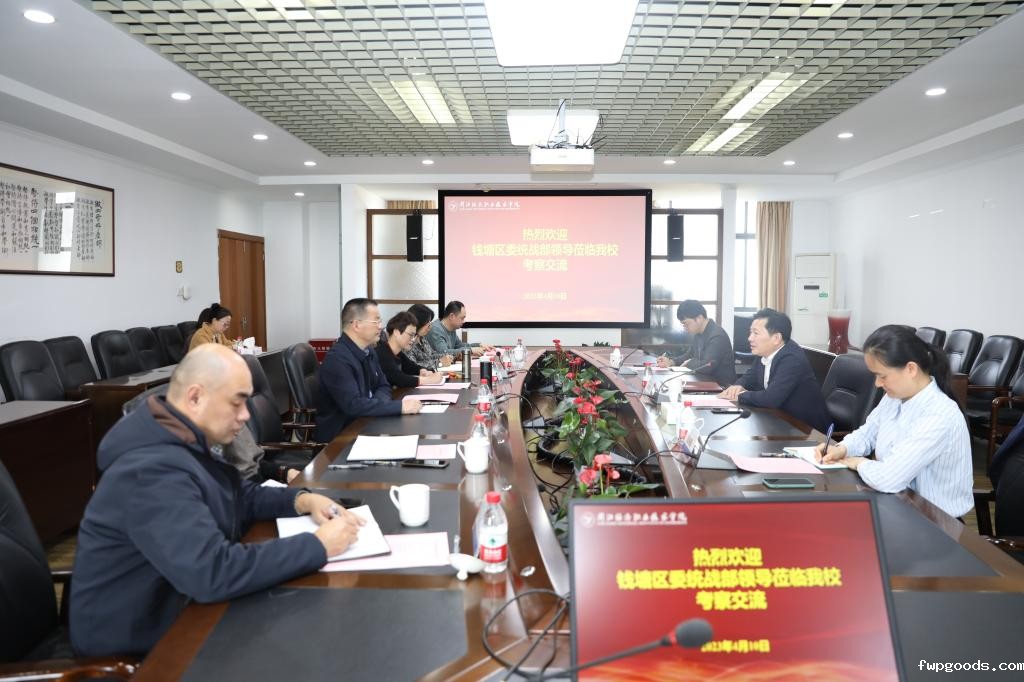 钱塘区统战部常务副部长戎婷蓉、钱塘区委统战部办公室副主任段翔、我校科研处处长潘凤钗、文化素质教育中心主任斯静亚、文化艺术学院院长朱红亮、宣传统战部副部长房栋参加了调研交流。