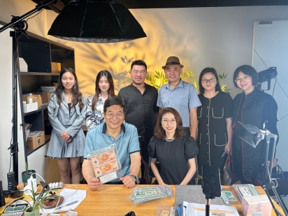 邵庆祥校长在艺术品直播间和企业负责人及校友合影
