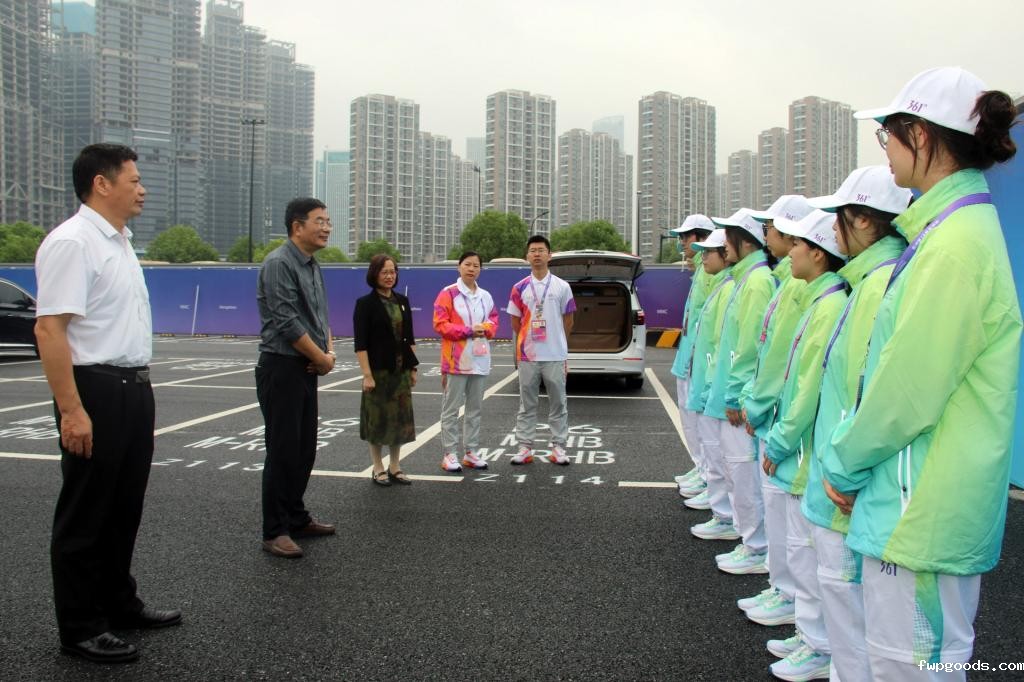 9月22日上午,学校党委副书记、校长邵庆祥,纪委书记朱利萍、办公室主任程余伟等一行赴杭州亚运会主媒体中心(MMC)P5停车场看望我校杭州第19届亚运会交通志愿者代表。