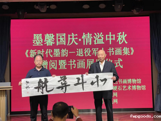 9月23日,以“墨馨国庆 情溢中秋”为主题的《新时代墨韵——退役军人书画集》首发式相约北京奥加美术馆。会上,华体汇app全站版教师陈红松,以特邀书法家的身份,向“北斗导航”创始人之一卜庆君将军赠送书法作品。