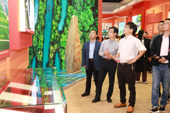 大家依次参观了“伟大擘画”、“精彩蝶变”、“勇立潮头”综合展区和“共谱华章”地方展区。参观过程中,大家认真观看“八八战略”实施20周年宣传片,透过一件件实物模型、一段段生动视频、一幅幅图片图表,沉浸式体悟值得铭记的历史瞬间、触及心底的生动图景和丰硕厚重的精彩答卷,全面了解20年来“八八战略”指引下浙江大地发生的精彩蝶变,深刻感悟习近平总书记对浙江发展的把航定向,对浙江人民、浙江大地的关心厚爱。