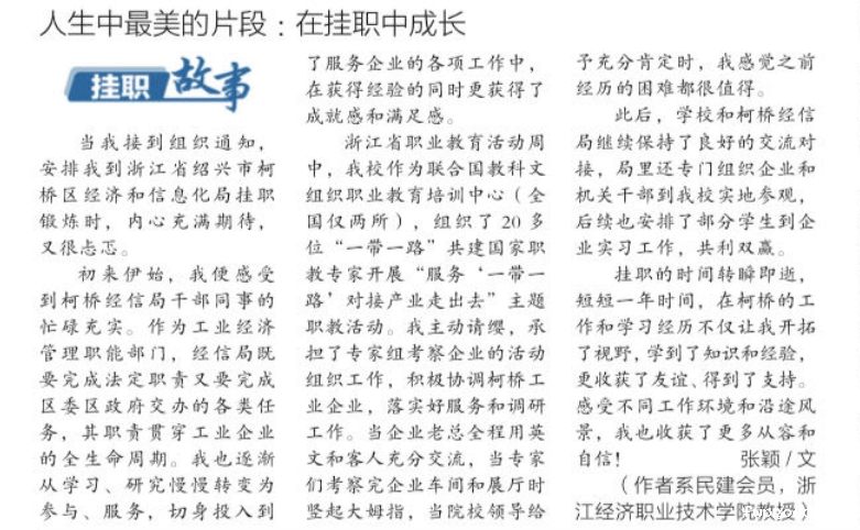 近日,《中国新闻报》刊发我校梦想创业学院副院长张颖的挂职成长感受。