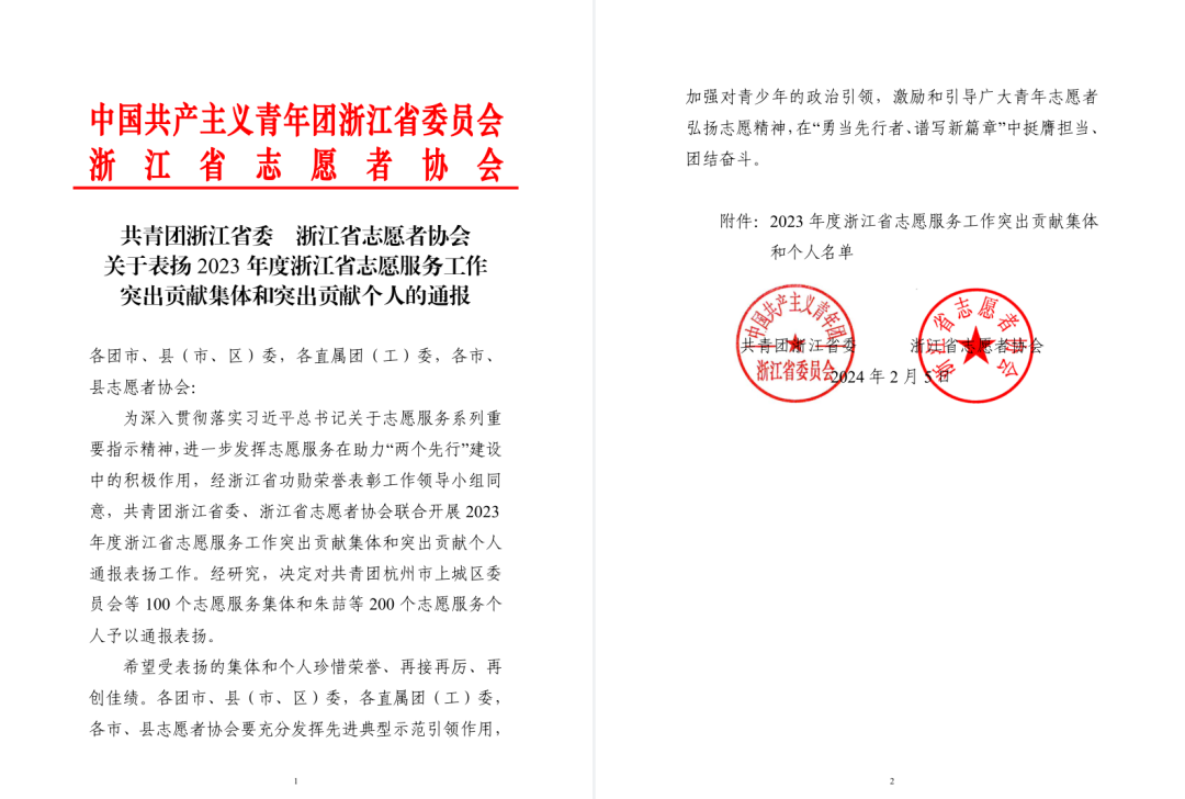 共青团浙江省委、省志愿者协会决定对100个志愿服务集体和200个志愿服务个人予以通报表扬,华体汇app全站版物流与供应链管理学院团总支获“突出贡献集体”荣誉称号,校团委周美华老师获“突出贡献个人”称号。