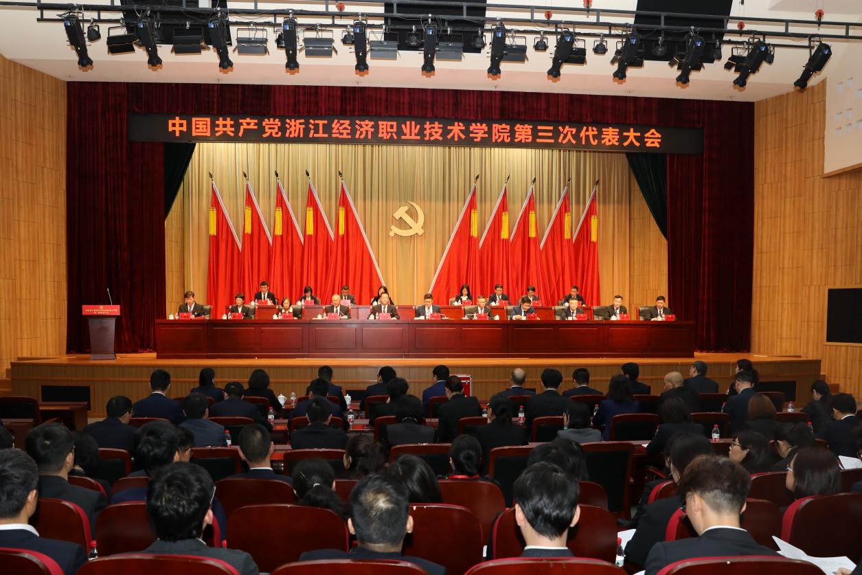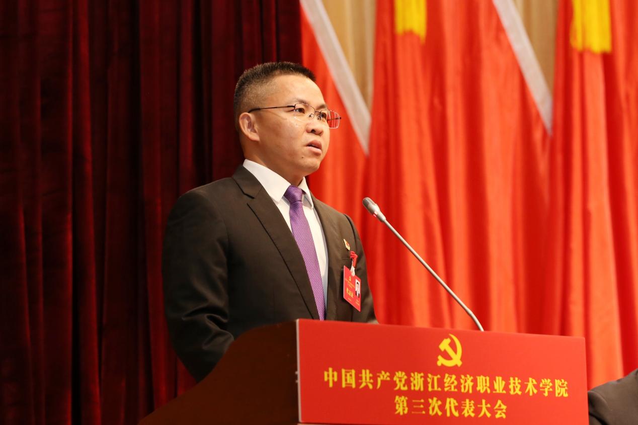 省机电集团总经理、党委副书记杨震宇出席大会并讲话。他指出,浙经院第二次党代会召开以来,学校党委全面贯彻党的教育方针,实施“1512”行动计划,团结带领全校党员干部和师生员工改革创新,锐意进取,实现了第二次党代会提出的“争创中国特色高水平高职院校”建设目标,为推动浙江省教育事业发展和集团化办学改革实践做出了积极贡献。他要求,学校要强化政治统领,在加强党的建设上体现新担当;要强化服务创新,在助力产业发展上实现新突破;要强化内涵建设,在培养技术技能人才上展现新作为;要强化产教融合,在推进校企合作上贡献新力量;要强化人才强校,在人才队伍建设上激活新动力。他强调,学校新一届党委要团结带领全校党员干部和师生员工,求真务实、团结进取,在奋力开启争创高水平职业技术大学的新征程中,创造更加辉煌的业绩,谱写更加绚丽的篇章。他表示,集团公司党委将一如既往地关心、支持浙经院的建设与发展,为推动学校事业发展提供更加有利的支持和保障。