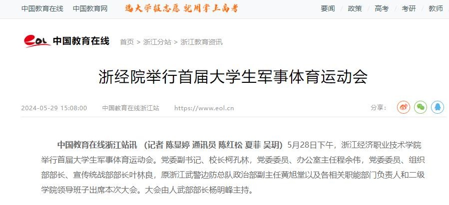 【中国教育在线】【中国报道】【凤凰新闻】浙经院举行首届大学生军事体育运动会