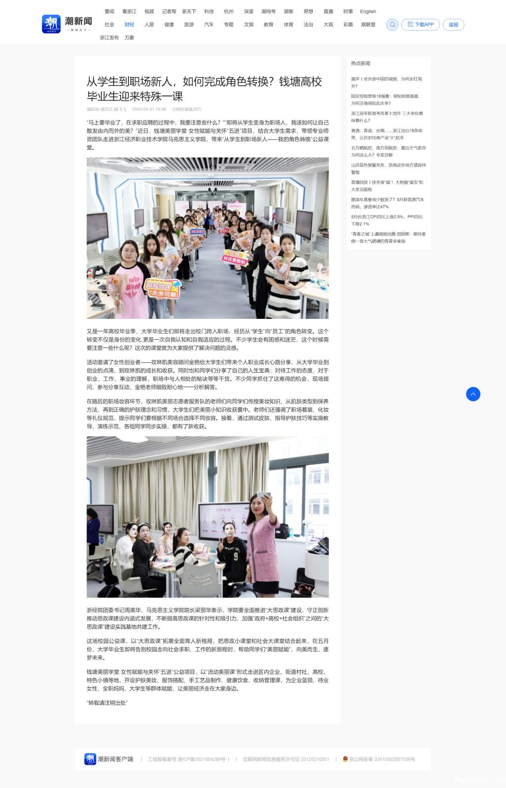 【杭州政协】【潮新闻】“从学生到职场新人 我的角色转换” 无党派人士界别委员送公益课进高校