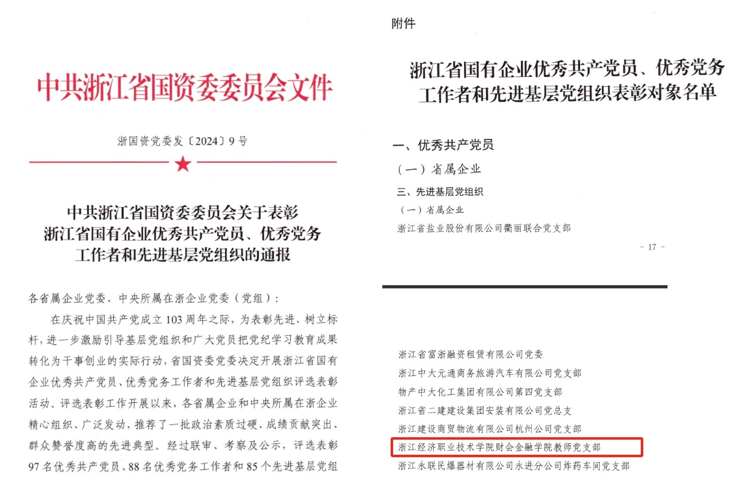 财会金融学院教师党支部获评浙江省国有企业“先进基层党组织”