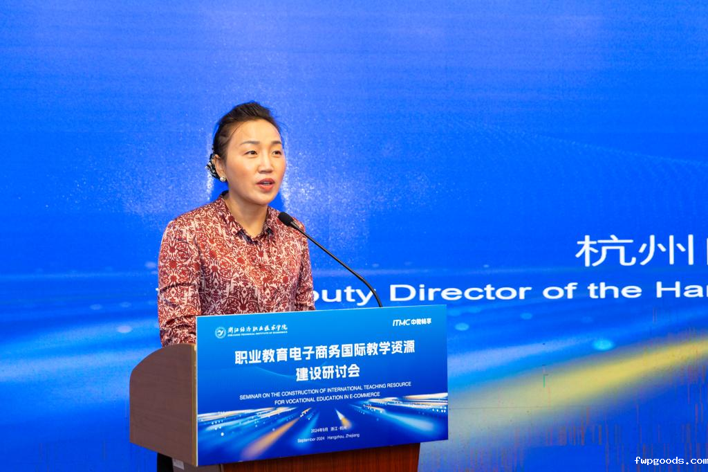 武长虹代表杭州市商务局和跨境电商综试办对研讨会的召开表示热烈祝贺,并表示杭州是全国首个跨境电商综试区,人才是跨境电子商务发展的关键,“政、企、校、社”联动为构建全球跨境电商最优人才生态圈发挥重要作用,各方共同探讨电子商务教育国际化发展之路,谋划构建电子商务专业国际化资源库,尤为重要。她期待此次会议能为跨境电商人才的培养注入新动能,进一步推动电商教育的国际化进程。