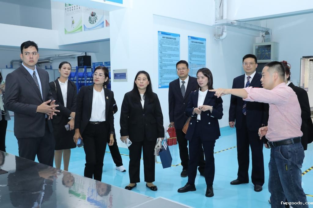 座谈会后,泰国校长团参观了我校物流与供应链管理学院、汽车技术学院、商贸流通学院的产教融合实训基地。宾主双方就我校理实一体化实训模式、智慧化实训室建设与管理等方面进行了深入交流。