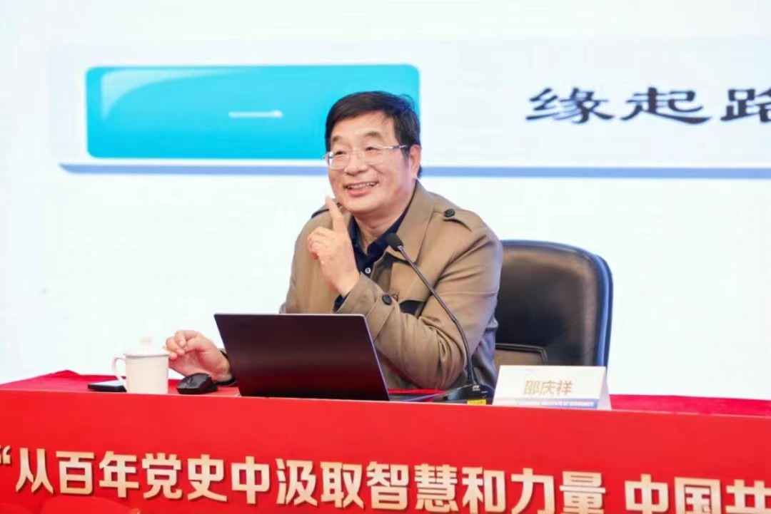 第四讲由中国管理科学学会领导力专业委员会专家,浙江省国资委党校教务长邵庆祥讲授《红色领导力的视角:中国传统存象思维与共产党的执政实践》,我校马克思主义学院副院长寇翔主持。