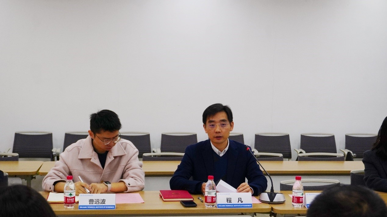 程凡向北京电子科技职业学院经济管理学院的来宾们介绍了学院基本情况。从学校的历史沿革到如今的专业设置,从优秀的师资队伍到丰富的教学资源,全面展示了学院风采。北京电子科技职业学院经济管理学院党总支副书记王春祥也详细介绍了他们学校的建设发展与特色优势。