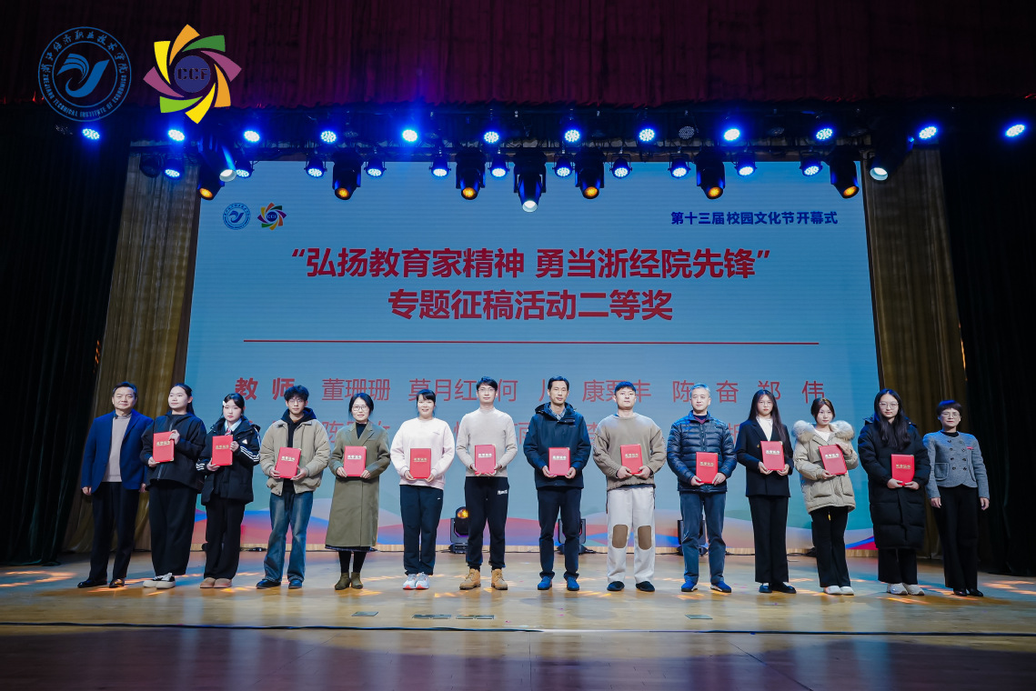 “弘扬教育家精神,勇当浙经院先锋”专题征稿获奖者,由党委委员、副校长聂华,党委委员、副校长陈专共同为其颁奖。