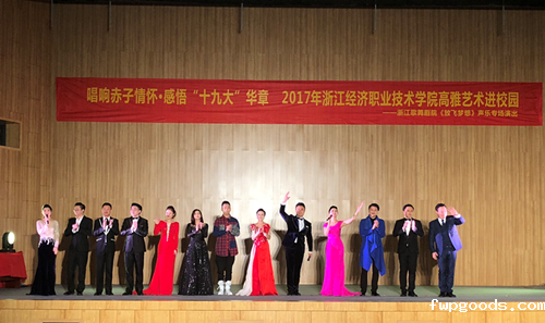 唱响赤子情怀 感悟“十九大”华章 12月11日晚,2017年高雅艺术进校园——浙江歌舞剧院《放飞梦想》声乐专场演出在物产中大管理学院二楼报告厅举行。党委副书记、校长邵庆祥,学工部副部长、学生处副处长叶林良出席晚会,与700余名师生一同欣赏了演出。声乐演出在充满朝气的一首《当我们》歌曲中拉开帷幕。整场声乐会跨越古今、涵盖中西,既有经典曲目,也有以...