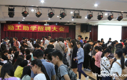勤工励志 助学成才 10月20日下午,由学工部、学生处主办的2015年学生勤工助学招聘大会在学生活动中心举行。本次大会共提供涵盖了26个用工部门的勤工助学岗位450余个,吸引了1000余名学生踊跃应聘,整个会场秩序井然。 为助推育人新模式,深化资助效果,今年勤工助学工作较往年有了较大改革和提升。一是工时管理,效率第一...