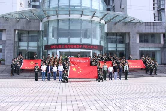 杭州市第三届高校国旗护卫队交流大会在我院举办 5月10日,杭州市第三届高校国旗护卫队交流大会在我院至善广场举行。杭州电子科技大学、杭州师范大学、浙江工商大学、中国计量学院四所高校的国旗护卫队应邀参加了交流会,浙江省人民政府警卫中队国旗班班长曹杰担任指导嘉宾,我院学工部副部长、学生处副处长易际培、学生社区管理服务中心副主任张穹、国旗护卫队指导老师张...