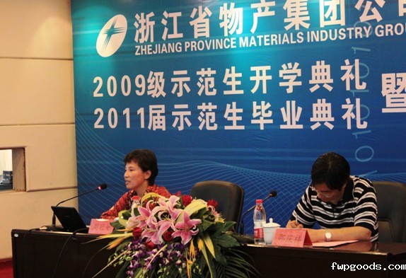 精神的盛宴 智慧的彰显 浙江物产集团党委副书记周冠女为“浙江物产”示范生和“职场精英”作专场报告会 5月19日下午,2009级“浙江物产”示范生开学典礼暨“职场精英”修炼营成立仪式在学校行政楼三楼报告厅隆重举行,会上,浙江省物产集团公司党委副书记周冠女为“浙江物产”示范生和“职场精英”作专场报告会。报告会由学校副院长邵庆祥主持。周...