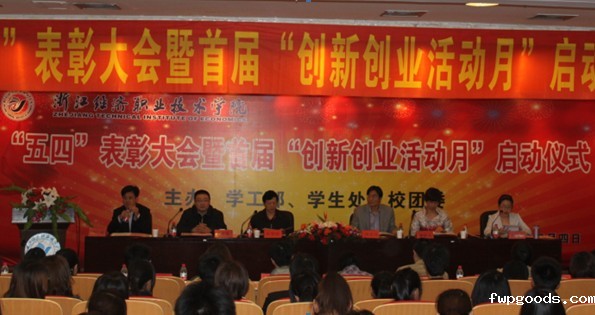 争创青年先锋,树立优秀典型,推动创新创业,提升管理水平 我校隆重举行2011年“五四”表彰大会暨首届“创新创业活动月”启动仪式会议现场5月4日下午,为了纪念伟大的五四爱国运动92周年,我校在行政楼三楼报告厅隆重举行2011年“五四”表彰大会暨首届“创新创业活动月”启动仪式,学校党委委员、副院长应智国、邵庆祥,科研处处长徐秋儿,学工部部长、学生处处长姜宇国,学工部副部...