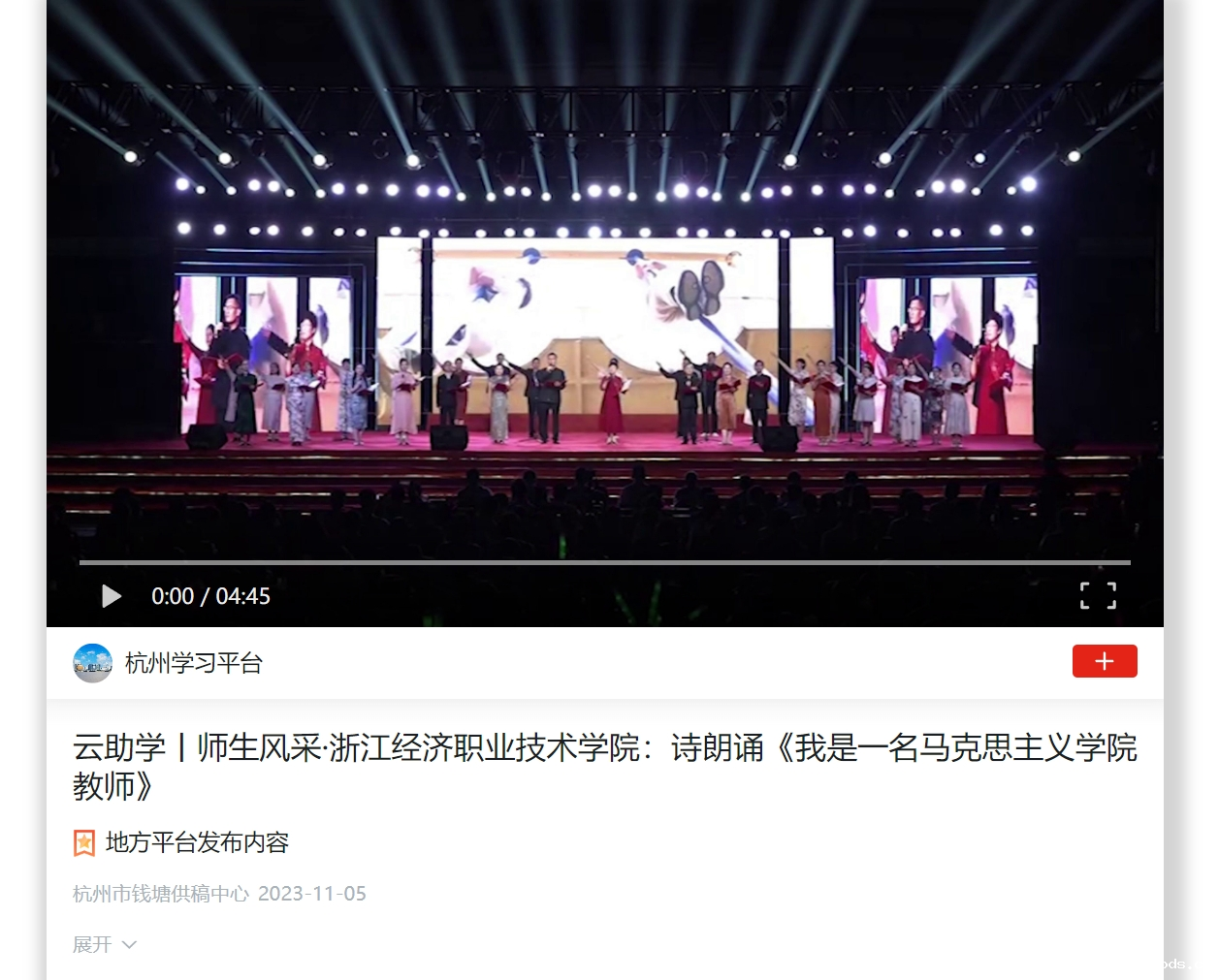 【学习强国】云助学丨师生风采·华体汇app全站版:诗朗诵《我是一名马克思主义学院教师》 近日,《学习强国》刊发我校开学典礼视频,诗朗诵《我是一名马克思主义学院教师》,展示我校思政教育特色活动。媒体链接:https://article.xuexi.cn/articles/index.html?art_id=17298364153668076697&source=share&cdn=https%3A%2F%2Fregion-zhejiang-resource&study_style_id=video_default&reco_id=1026...