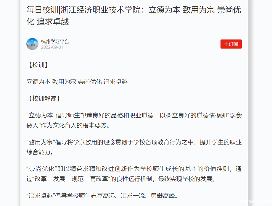 【学习强国】宣传我校校训内涵 近日,《学习强国》全面介绍我校“立德为本 致用为宗 崇尚优化 追求卓越”校训内涵。 媒体链接:https://article.xuexi.cn/articles/index.html?art_id=10827341311158947147&source=share&study_style_id=feeds_default&share_to=wx_single&study_comment_disable=0&ptype=75&item_id=10827341311...