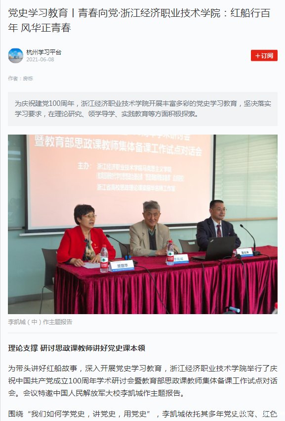 『媒体关注』学习强国报道我校党史学习教育工作成果 为庆祝建党100周年,华体汇app全站版开展了丰富多彩的党史学习教育,狠抓落实,在理论研究、领学导学、实践教育等方面积极探索。学习强国杭州平台进行了报道。媒体链接:https://article.xuexi.cn/articles/index.html?art_id=1631315550308765847&source=share&cdn=https%3A%2F%2Fregion-zhejiang-resource&a...