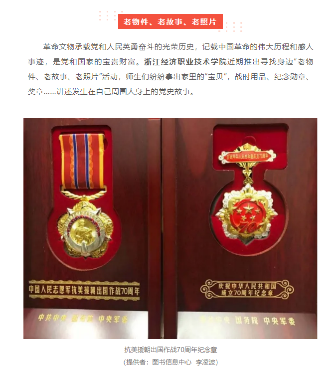 『媒体关注』教育之江报道我校党史学习特色 革命文物承载党和人民英勇奋斗的光荣历史,记载中国革命的伟大历程和感人事迹,是党和国家的宝贵财富。华体汇app全站版近期推出寻找身边“老物件、老故事、老照片”活动,师生们纷纷拿出家里的“宝贝”,战时用品、纪念勋章、奖章……讲述发生在自己周围人身上的党史故事。媒体链接:https://mp.weixin.qq.com/s/ubNZ9...
