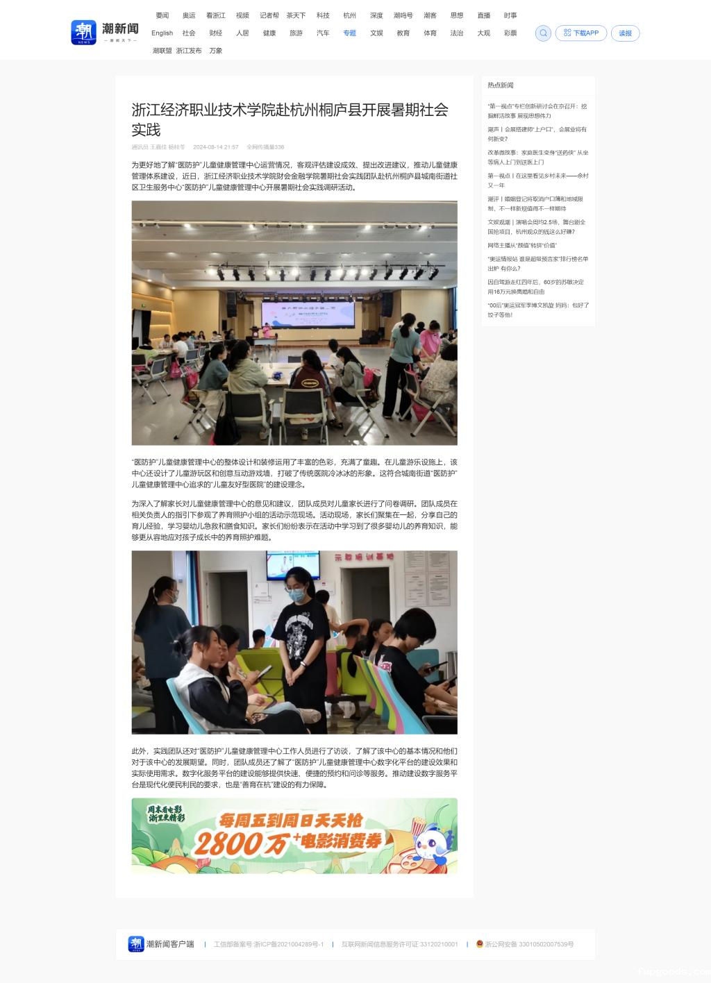【潮新闻】华体汇app全站版赴杭州桐庐县开展暑期社会实践 近日,《潮新闻》报道我校财会金融学院暑期社会实践团队赴杭州桐庐县城南街道社区卫生服务中心“医防护”儿童健康管理中心开展暑期社会实践调研活动。媒体链接:https://tidenews.com.cn/news.html?id=2874383编辑:房栋