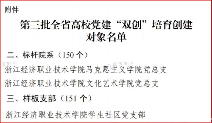 喜报︱我校党建“双创”工作再获佳绩! 近日,省委教育工委公布了全省第三批新时代高校党建工作示范高校、标杆院系、样板支部培育创建单位名单,我校申报的3个基层党组织全部上榜。其中,马克思主义学院党总支、文化艺术学院党总支入选全省高校党建工作标杆院系培育创建单位,学生社区党支部入选全省高校党建工作样板支部培育创建单位。下一步,学校党委将深入学...