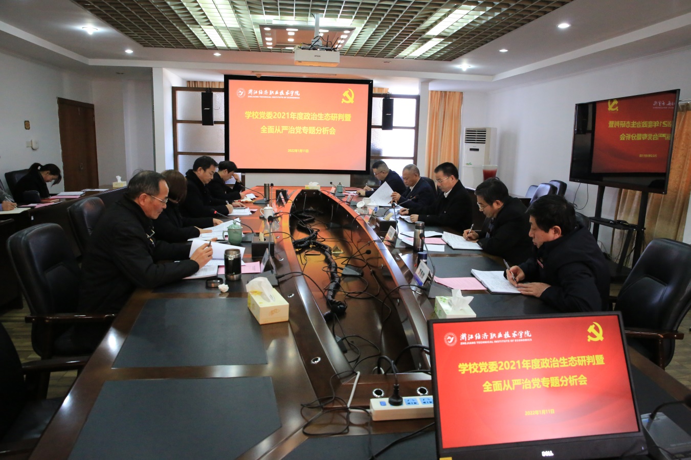 我校党委召开2021年政治生态研判暨全面从严治党专题分析会 1月11日下午,学校党委书记骆光林主持召开2021年政治生态研判暨全面从严治党专题分析会。全体校领导出席会议。学校纪委委员,党委职能部门负责人及有关工作人员参加会议。 骆光林代表学校党委作2021年全面从严治党主体责任履行情况报告。他指出,2021年,学校党委认真落实上级党委和纪委关于全面从严治党...