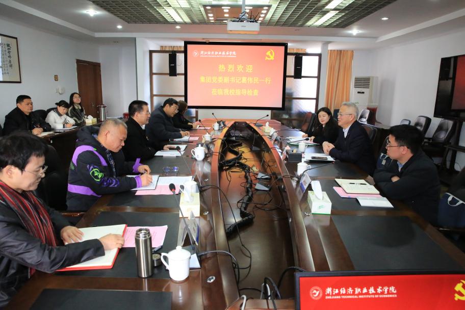 省机电集团来校检查党建和党风廉政建设责任落实情况 1月7日上午,省机电集团党委副书记葛伟民率考核组成员来校检查党建和党风廉政建设责任落实情况。学校党委书记骆光林,党委副书记、校长邵庆祥,班子成员吕红刚、朱利萍、陈专以及相关职能部门负责人参加检查考核会。葛伟民对学校党建和党风廉政建设责任落实情况给予充分肯定,党史学习教育有声有色,党建工作有形有实,党组...