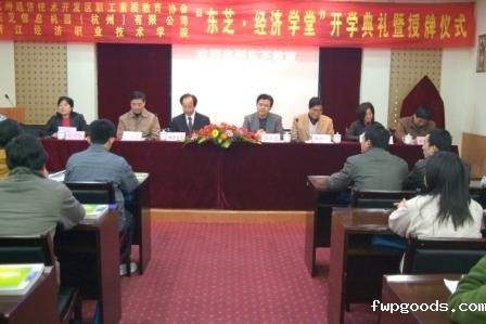 东芝经济学堂开学典礼暨授牌仪式圆满举行 3月30日晚,东芝经济学堂开学典礼暨授牌仪式在学校信息楼一楼英语村会议室召开,开发区总工会副主席、职工素质教育协会副会长郭正良,东芝信息机器(杭州)有限公司总经理樱井良树,学校副院长邵庆祥、东芝信息机器(杭州)有限公司总务部部长许赣申、成教学院院长徐霄红、财会金融学院副院长周叶芹以及汽车技术学院实训中...