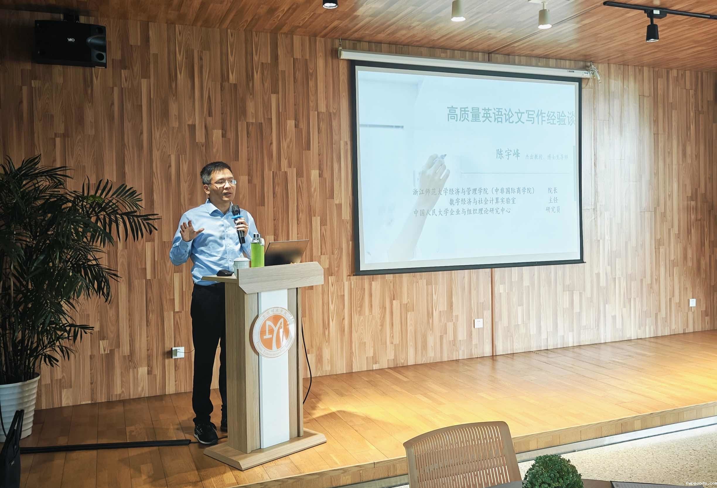 浙江师范大学陈宇峰教授应邀来我校作科研讲座 5月10日下午,浙江师范大学经济与管理学院院长、博士生导师陈宇峰教授,为梦想创业学院教师带来了一场题为“如何撰写高质量中英文论文”的精彩讲座。此次讲座由梦想创业学院副院长张颖主持,吸引了学校行政部门及二级学院共30余位教师的积极参与。 陈教授结合其数十年的科研和论文写作经验,以轻松幽默的语调和通俗易懂...