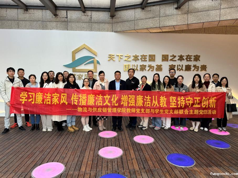 参观钱塘清廉家风馆,学习传播增强廉洁意识——物流与供应链管理学院主题党日活动 为持续深入开展习近平新时代中国特色社会主义思想主题教育,纵深推进“清廉物院”建设,提升学院廉洁文化活动覆盖面和师生参与度,11月28日,物流与供应链管理学院教师党支部和学生党支部参观了钱塘清廉家风馆,学习廉洁家风,传播廉洁文化,增强廉洁从教,坚持守正创新。 建设优良家风是党员干部的终身课题,也是促进社...
