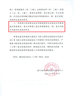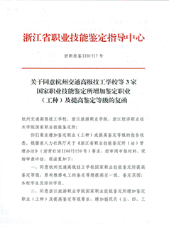 根据浙江省职业技能鉴定指导中心《关于同意杭州交通高级技工学校等3家国家职业技能鉴定所增加鉴定职业(工种)及提高鉴定等级的复函》(浙职技鉴〔2015〕7号),我院获得高级汽车修理工鉴定资质。这表明,我院鉴定所工作又上了一个新台阶。