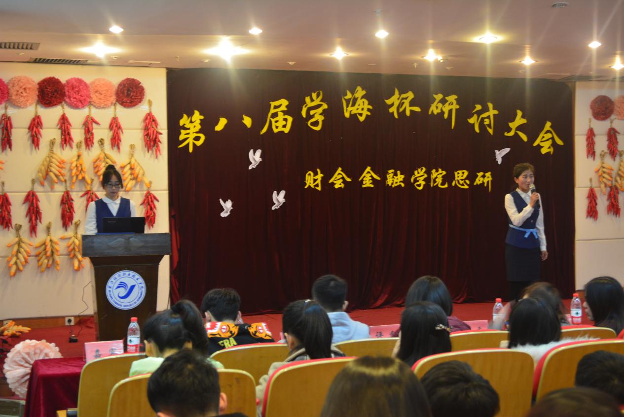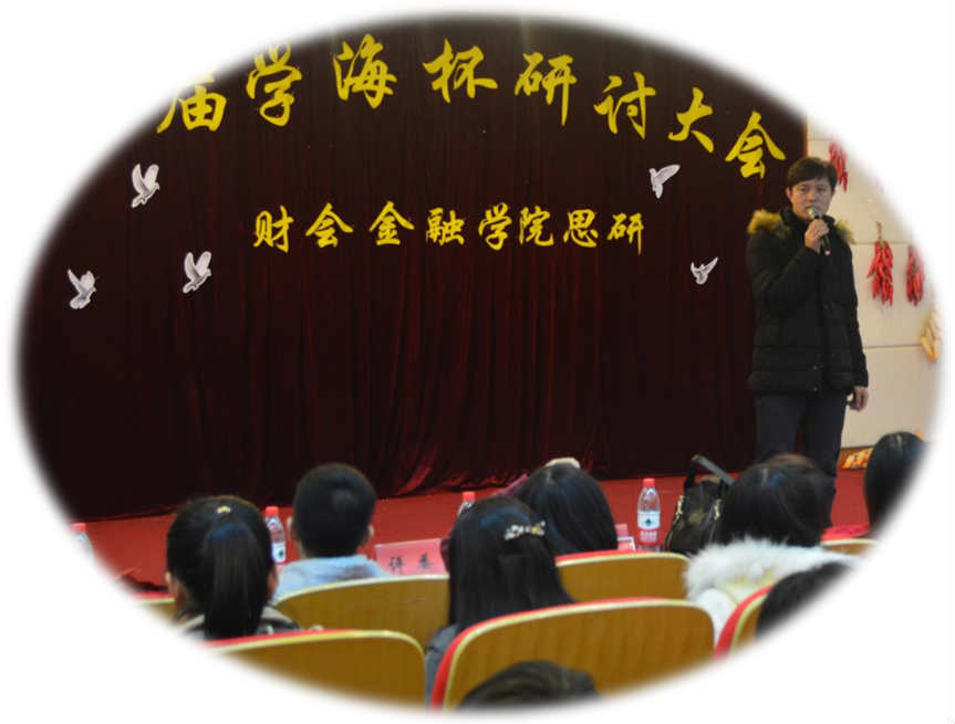 2015年12月7日晚18时,财会金融学院第八届学海杯研讨大会在我校行政楼三楼报告厅举行。本次活动在财会金融学院思研会会长应麒宇老师以及副会长顾秋芳的带领之下开展,其中光临本次大会的嘉宾分别有:党总支副书记叶林良老师,团总支书记、财会金融学院辅导员董蓉蓉老师,以及思政辅导员、校思研指导老师尹禹文等诸多位老师。另外,我组织还特别邀请了校思研副会长陈德市、物流技术学院思研会副会长楼诗丹等诸多位学生干部作为本次大会的评委。