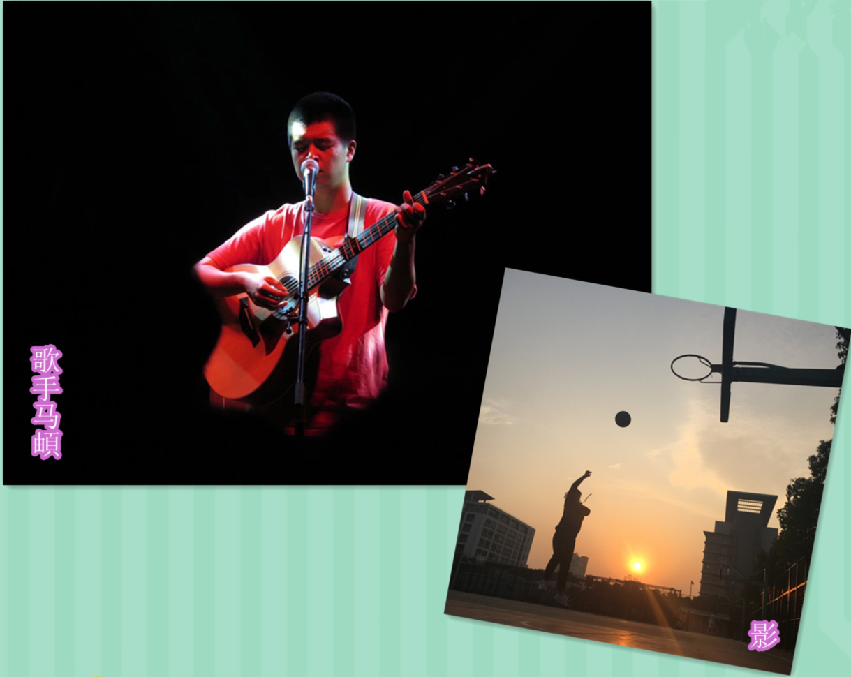 一等奖选手林幸欣的作品《歌手马頔》是在她去看自己最喜欢的歌手马頔演唱会时拍摄的,漆黑的背景,现场灯光的投影,前排观众头影的遮挡共同交织出这幅独特光影效果的人物剪影。二等奖郭思琪的作品《影》是她观看同学练习篮球的过程中拍摄的。在篮球练习的过程中,夕阳西下,天色渐暗,人物逐渐从清晰变成了黑色剪影,篮球的黑色剪影与夕阳交相辉映。