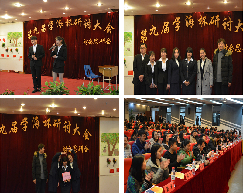 2016年12月15日19点30分,财会金融学院在行政楼三楼报告厅举行第九届学海杯研讨大会。党总支副书记叶林良,辅导员洪程楚、应麒宇,教学秘书柯甜,文化艺术学院尹禹文,学校宣传部林瑞双老师,党员之家学生主任李亚香等出席并担任本次研讨会的评委。