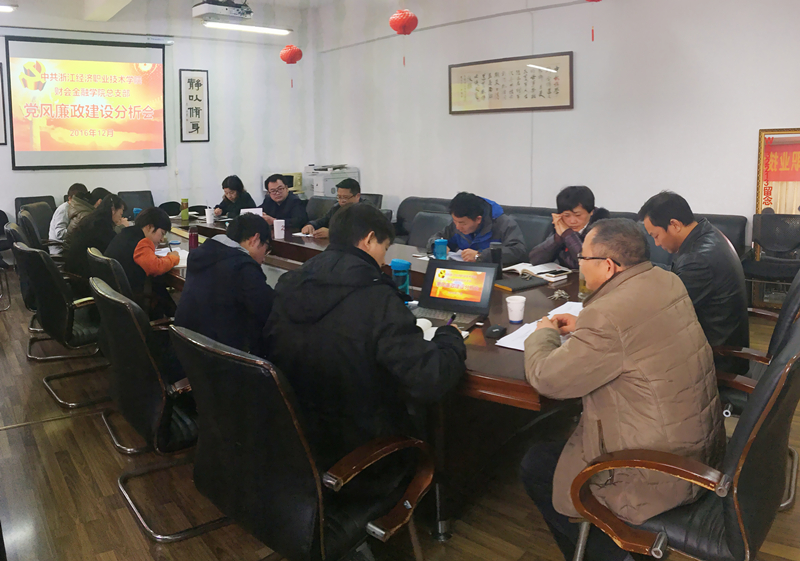 2016年12月19日下午13:40,财会金融学院党总支2016年下半年党风廉政建设分析会在行政楼5楼会议室顺利召开。学校党委委员、副院长吕红刚出席会议,分院党总支书记聂华主持会议,分院党总支委员,教工支部、学生支部各位支委参加了此次会议。
