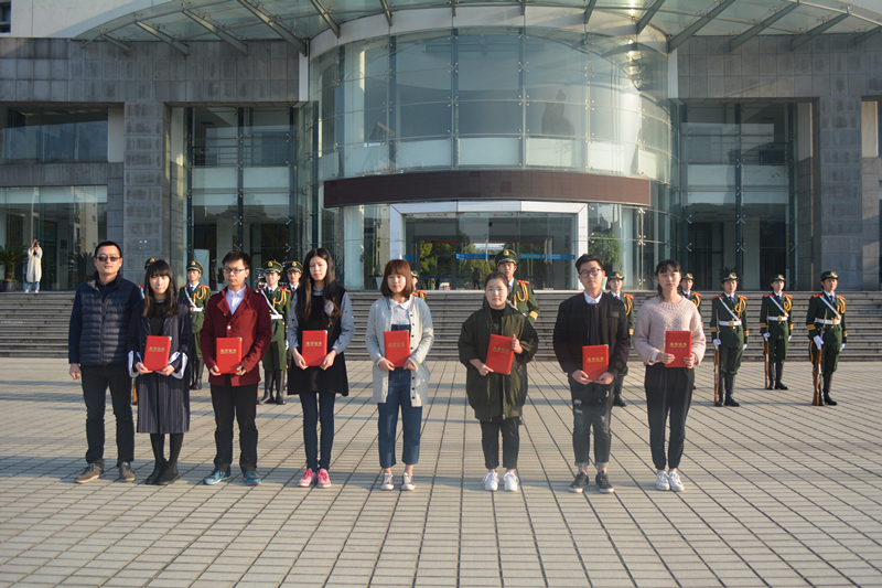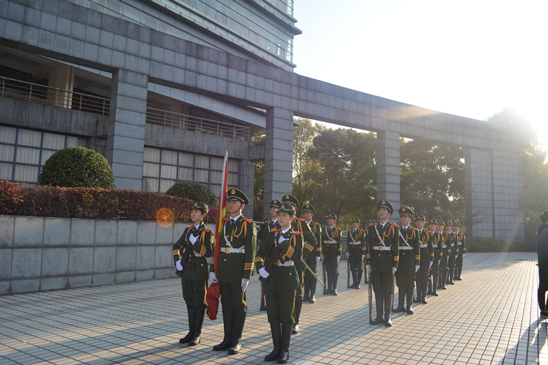 首先由团总支副书记李春雨宣布升旗仪式正式开始。仪式第一项:升国旗奏国歌。迎着朝阳,国旗护卫队队员们迈着铿锵的步伐,来到国旗台。全场肃静,伴随着激昂的《义勇军进行曲》,抛旗手振臂一挥,五星红旗徐徐展开,在全院师生的注目下缓缓上升。仪式第二项:表彰上学期各组织优秀干部、干事,并由院长助理葛高峰老师、辅导员应麒宇老师为我院优秀干部、干事颁奖,并合影留念。至此,本次升旗仪式圆满结束。