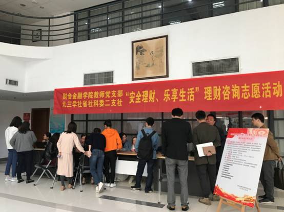 会后,分院教师党支部与九三学社浙江省社会科学委员会第二支社共同开展了“安全理财、乐享生活”理财咨询志愿活动,为学校师生解答个人所得税纳税筹划、证券投资规划、家庭保险规划、外汇理财规划、宝玉石鉴定与投资、互联网金融风险防范与投资、金融科技最新应用解读等理财问题,受到师生欢迎和好评。