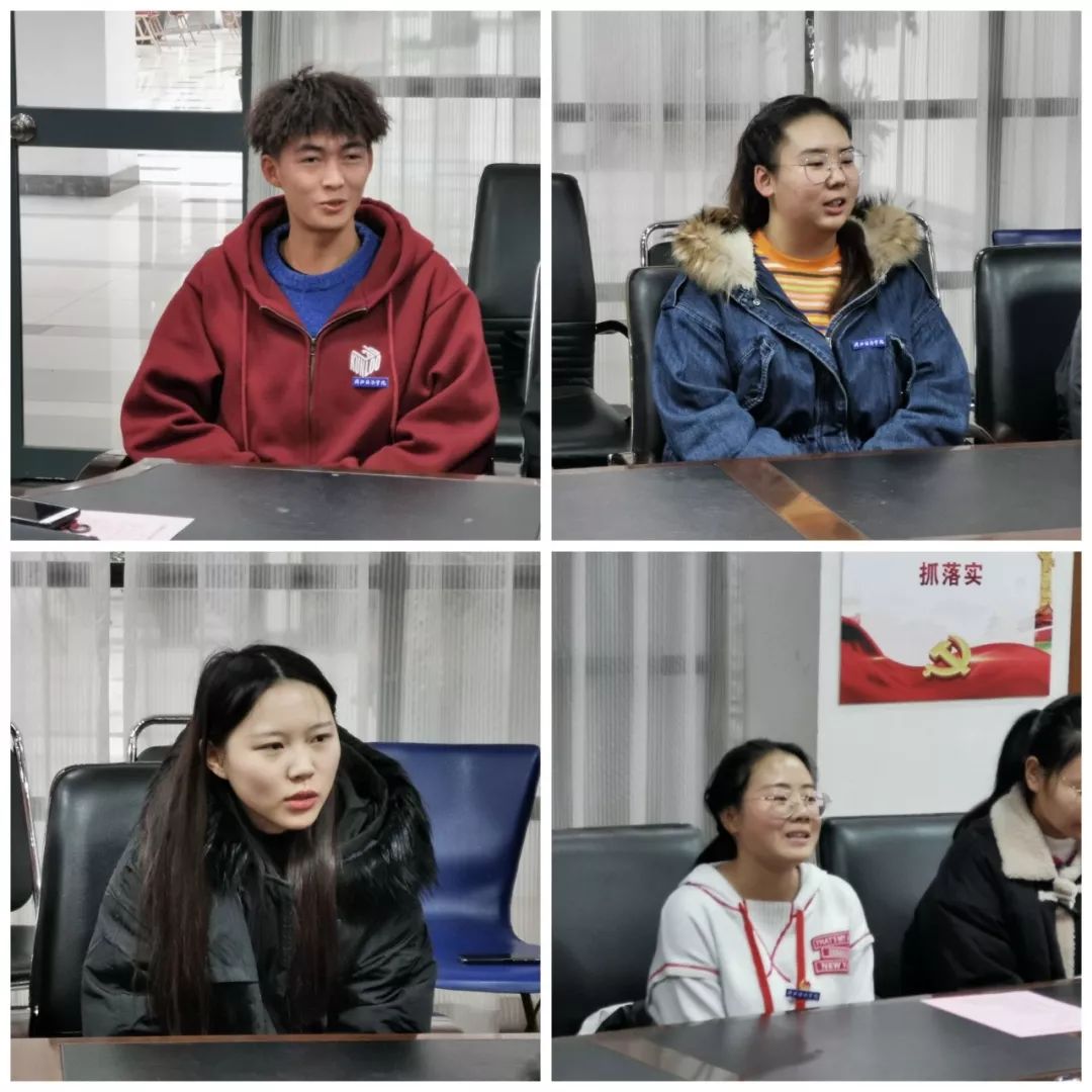 参会学生纷纷发言,介绍了在校学习生活的基本情况,对老师们给予的学习和生活上的帮助表示感谢,并希望在新的一年能为他们提供学习困难科目的帮助辅导,他们还表示会继续努力,以各方面的积极表现来回报学校和老师的关爱。